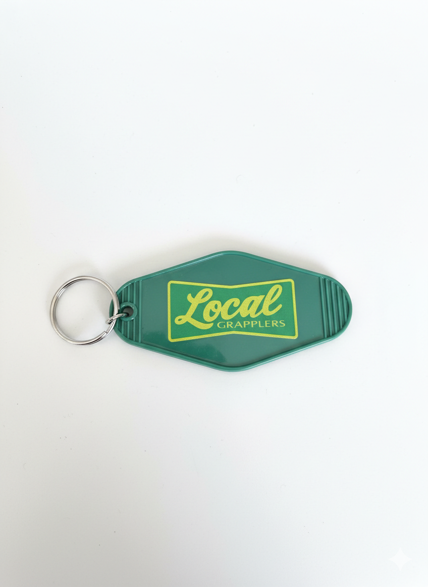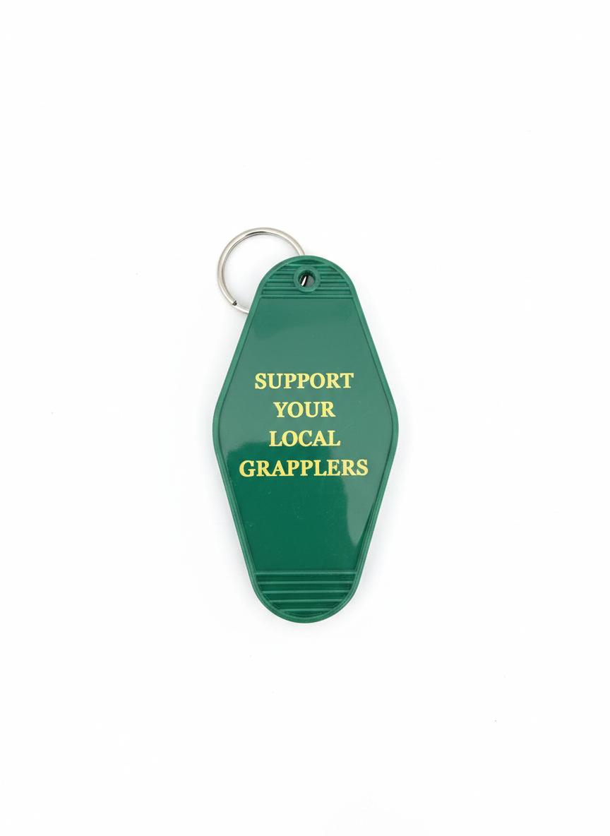 Carry a piece of the mat wherever you go with our "Support Your Local Grapplers" vintage-inspired hotel keychain. Whether you're a BJJ fanatic, a wrestling standout, or just a fan of the gentle art, this keychain is a subtle nod to the community that grinds daily.